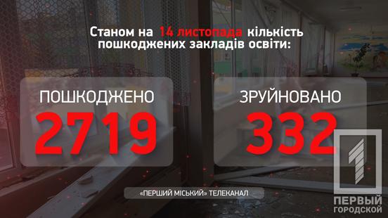 Поза тим, російська агресія розповсюджується й на об’єкти цивільної інфраструктури. Загарбники обстрілюють житлові будинки, лікарні, театри, а також заклади освіти. З 24 лютого у нашій державі пошкоджені діями рф 2719 навчальних установ, з них 332 не підлягають відновленню. За тиждень ці цифри не змінились.