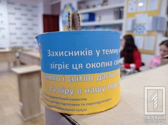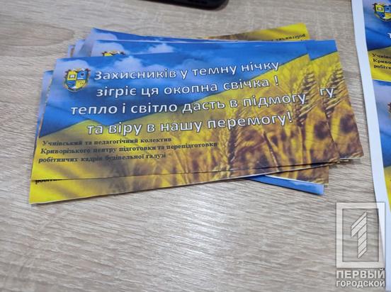 На базі одного із центрів перепідготовки робітничих кадрів Кривого Рогу викладачі, учні та батьки приєдналися до волонтерського руху. Плетуть сітки, виготовляють окопні свічки, ремонтують буржуйки, готують смаколики. Майже за три місяці небайдужі містяни виготовили вже понад 1000 окопних свічок.