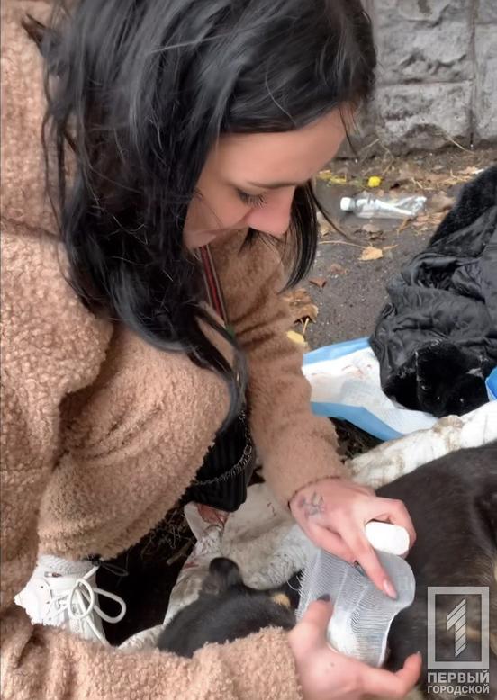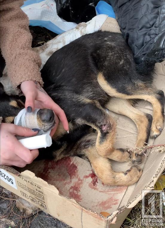 Волонтерка Наталя, що стала очевидицею цієї події поспішила на допомогу постраждалій собаці. Жінка зателефонувала до криворізького благодійного притулку для тварин «Рукавичка», а також викликала на місце події поліцію.