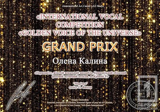 Вокальний колектив Кривого Рогу здобув переможні нагороди у II Міжнародному конкурсі «Золотий голос Всесвіту»