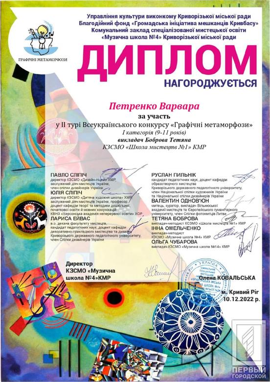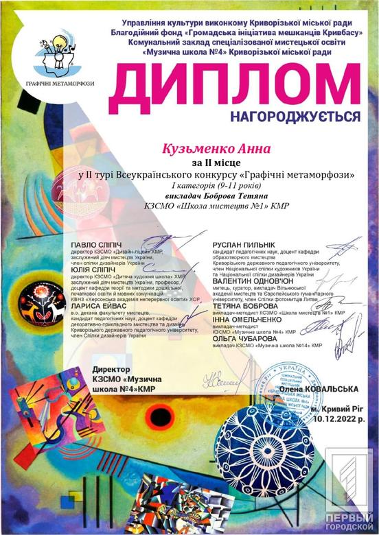 Перші й другі місця посіли юні криворізькі таланти на Всеукраїнському конкурсі «Графічні метаморфози»