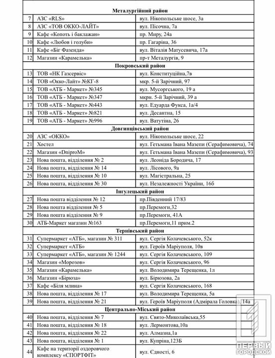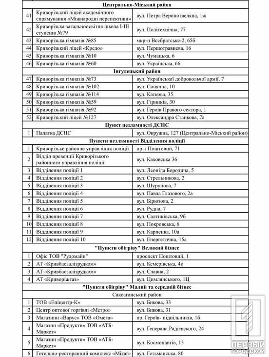 Перелік та адреси «Пунктів незламності» та обігріву, які діють в Кривому Розі.