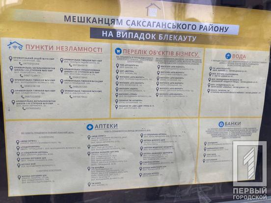 Інформацію про «Пункти Незламності» також можна переглянути на загальнонаціональному сайті (інформація про адреси там оновлюється). Перелік та адреси «Пунктів незламності» та обігріву, які діють в Кривому Розі.