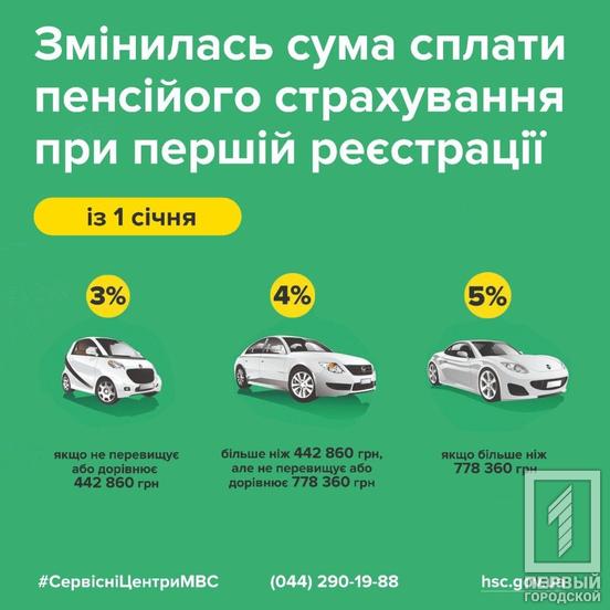 З 1 січня в Україні зросла вартість пенсійного збору при першій реєстрації легкового автомобіля