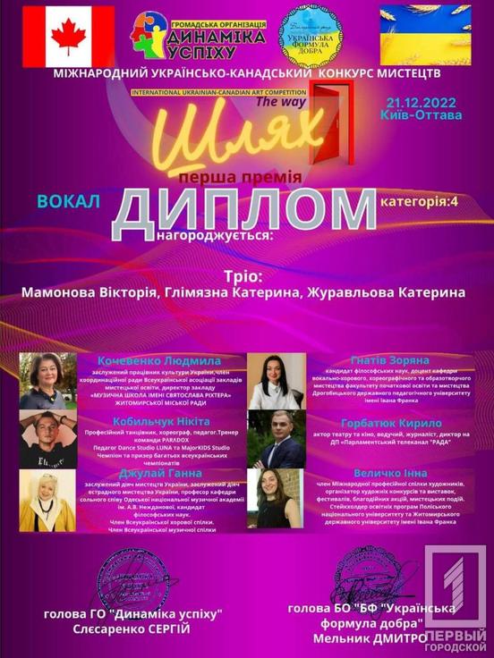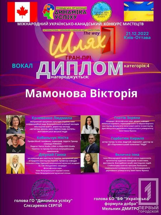 Напередодні новорічних свят провели міжнародні творчі змагання, до яких долучились й криворіжанки. Три вихованки міського музичного коледжу продемонстрували свої вміння й навички та здобули І місце і два Гран-прі. Відповідну інформацію розмістили у соцмережах Криворізького обласного фахового музичного коледжу.