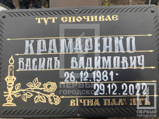 Вранці 5 січня розпочалась жалобна панахида за полеглим воїном Василем Крамаренком. Труну з тілом доставили у сектор почесних поховань, що на Центральному кладовищі. Саме там священнослужитель отець Святослав провів церемонію відспівування, а потім криворіжця поховали. Проститися з мужнім патріотом прийшли рідні та близькі, сусіди та товариші по службі.