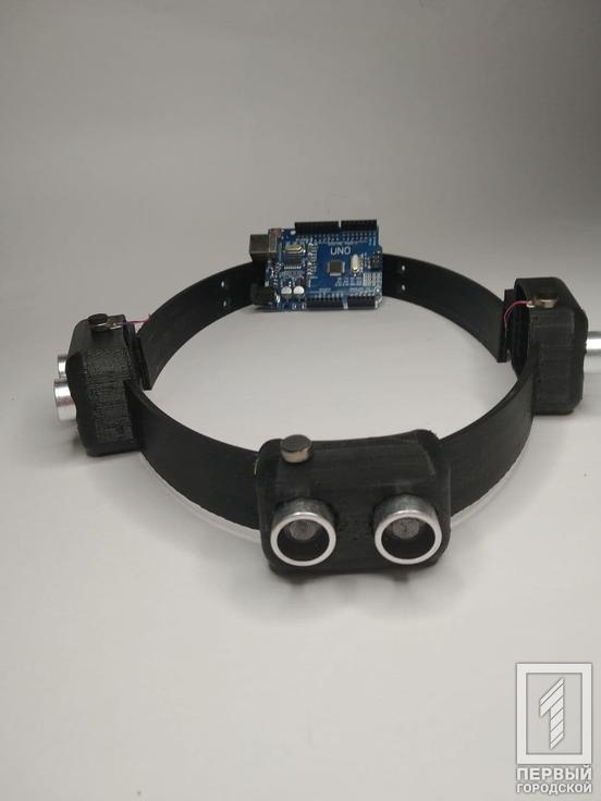 Як вказується у дописі, перші спроби були невдалими – ґаджет був неефективним матеріально і конструктивно. Натомість криворізькі розумники не зупинялись й працювали над приладом далі. Наразі в роботі «Версія 2.0». Як і попередній варіант, ця розробка знаходиться на голові людини. Адже саме так вдасться отримати інформацію, там розміщені три ультразвукові датчики. В якості передачі сигналу до людини обрали вібромотор, що закріпили в середні конструкції. Таким чином, коли користувач наближається до перешкоди, датчик починає розпізнавати її та подає сигнал на вібромотор.