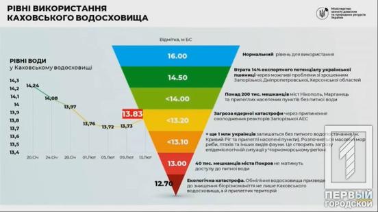 «Ситуація, яка сьогодні відбувається на Каховському водосховищі: колосальний спад рівня води вже призводить до негативних наслідків, і ми розуміємо ризики в подальшому. Якщо нормальний рівень Каховського водосховища є 16 метрів, сьогодні це 13,83 метри. Це в подальшому може призвести до того, що більше одного мільйона українців залишаться без питної води, а зниження рівня нижче 12 метрів призведе до екологічної катастрофи, оскільки велику кількість біорозмаїття ми можемо просто втратити», ‒ застерігає Руслан Стрілець.