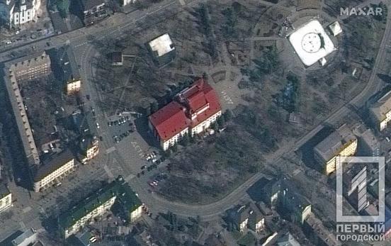 4. Фото зруйнованого рашистами драматичного театру в Маріуполі, поруч з яким був напис «ДЕТИ» – знімки Maxar Technologies.