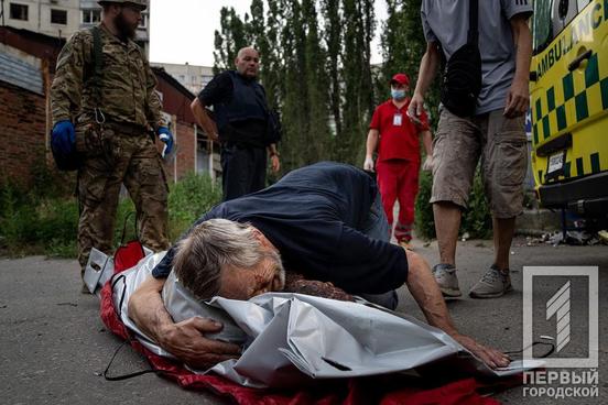7. Пан Віктор плаче біля тіла дружини Наталі, яка загинула після обстрілу у Харкові 7 липня ‒ Євген Малолєтка.