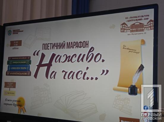 21 березня палац культури «Центральний», що на 44 кварталі зібрав чимало дорослих та малих творчих криворіжців. Цього дня тут пройшов захід «Наживо. На часі», який дав старт марафону популяризації української поезії у нашому місті. Організували його у палаці культури «Центральний» разом за підтримки виконкому Покровської райради.