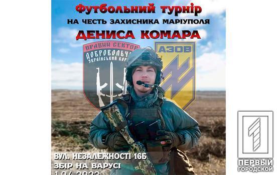 Нещодавно стало відомо про проведення в місті футбольного турніру, що планують присвятити полеглому за волю й незалежність України криворіжцю. Мова йде про Дениса Комара, життя якого обірвалося в Маріуполі від ворожої снайперської кулі рік тому. Змагання проведуть 1 квітня, тож всіх містян запрошують долучитись й вшанувати пам’ять нашого полеглого земляка.