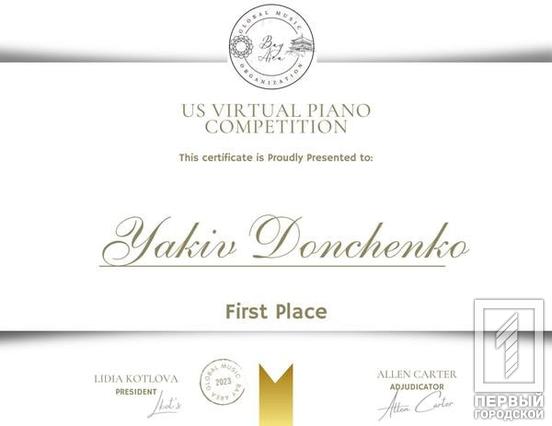 8 квітня стало відомо про черговий творчий тріумф наших піаністів. На міжнародному конкурсі «US Virtual Piano Competitions», який проходив в США, перше місце посів вихованець Криворізької школи мистецтв №2 Яків Донченко. Про здобуток свого учня школа повідомила на сторінці в соцмережі.