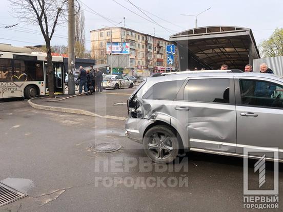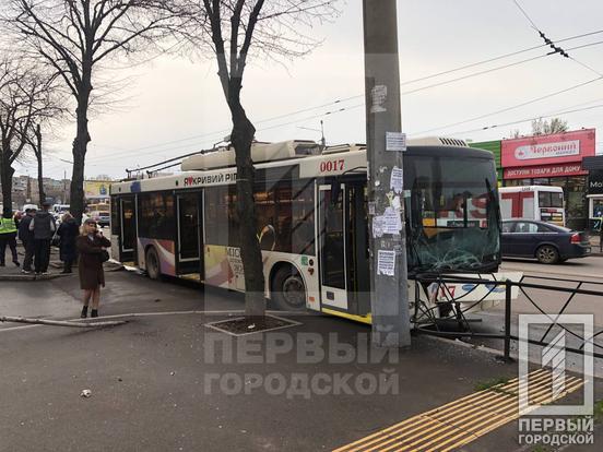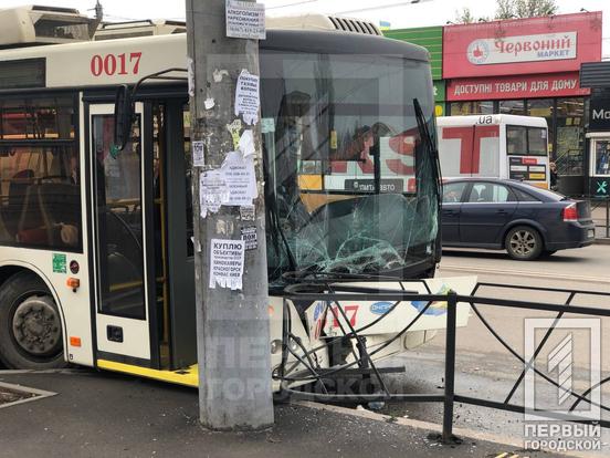 У Кривому Розі тролейбус врізався в паркан після небезпечного маневру водія кросовера, двоє людей травмувались