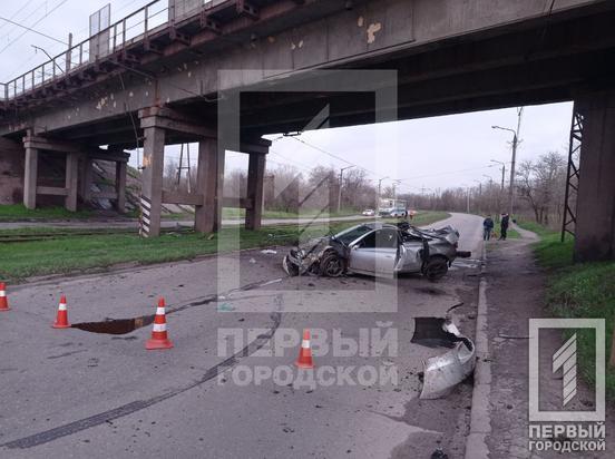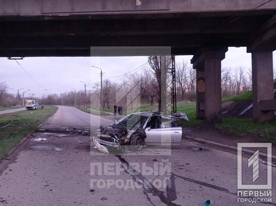 Вилетів на зустрічну та врізався в опори мосту: у Кривому Розі в аварії вщент розтрощило легковик