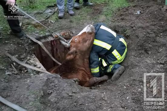 Криворізькі рятувальники визволяли корову зі смертельної пастки