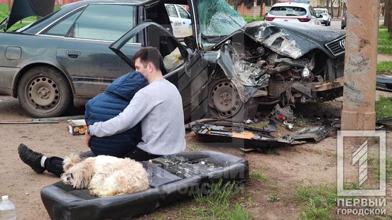 Поверталися від родичів і втрапили у ДТП: у Кривому Розі Audi, яку «підрізали», влетіла у стовп