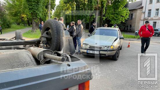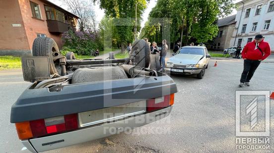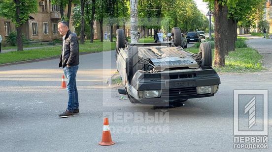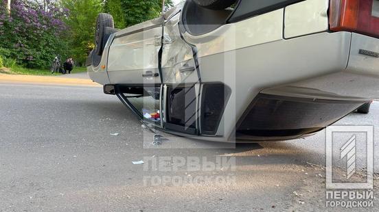 Догори дриґом: у Кривому Розі легковик від удару перекинувся на дах