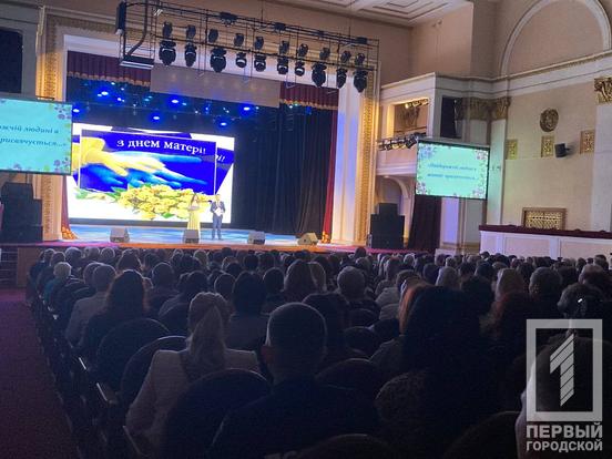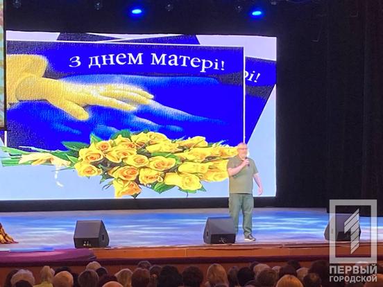 На міський захід до Дня матері у театр імені Шевченка прийшли матері, дружини близькі та рідні захисників - героїв, що віддали життя за цілісність та незалежність України. Також на святковому концерті були присутні представники ветеранських організацій міста та курсанти Криворізької академії поліції.
