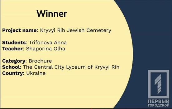 Учениця 11-А класу Криворізького Центрально-Міського ліцею Анна Тріфонова перемогла у Міжнародному молодіжному конкурсі «Місцеві єврейські кладовища» та виграла грошовий сертифікат на придбання у навчальний заклад необхідного електронного обладнання. Конкурс проводився під егідою Європейської ініціативи зі збереження єврейських кладовищ (ESJF), Фонду єврейської спадщини та освітньої організації Centropa в рамках проекту «Збереження єврейських кладовищ – охороняємо, навчаємо, поважаємо».