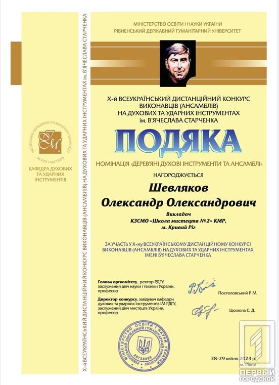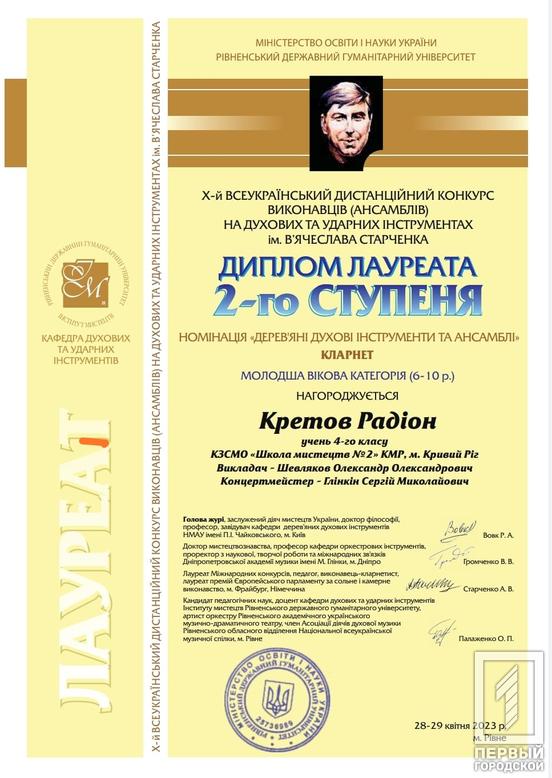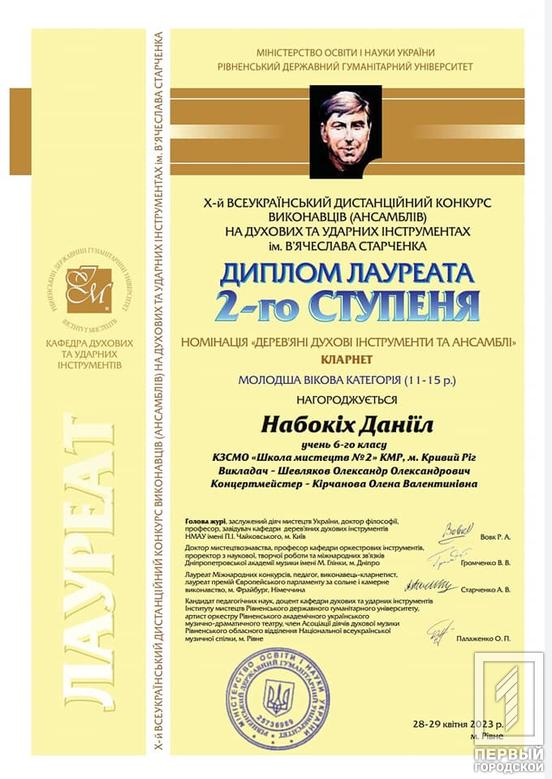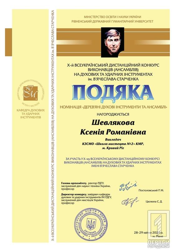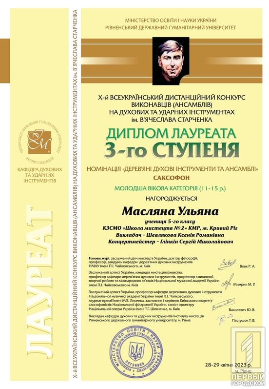 Молоді таланти Криворізької школи мистецтв №2 підкорили серця слухачів та здобули почесні нагороди на Х Всеукраїнському конкурсі виконавців на духових та ударних інструментах імені В’ячеслава Старченка, що відбувся у Рівному. Ця музична подія перетворилася на справжнє свято душі та таланту.