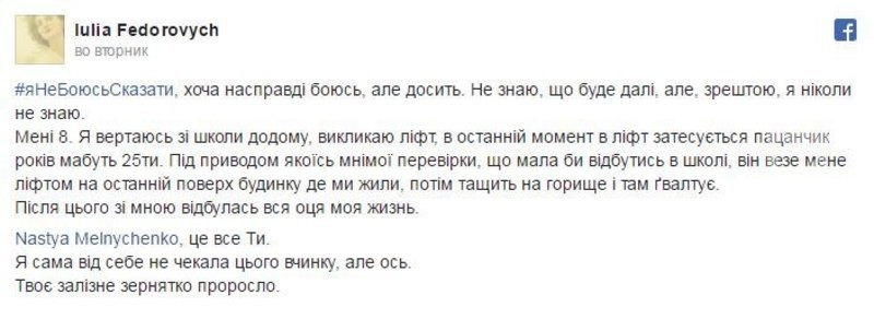 Не стоит молчать, когда слова лавиной просятся наружу. В социальных сетях появился новый флешмоб – под хэштегом #яНеБоюсьСказати украинские женщины делятся личными переживаниями о сексуальном насилии и негативном опыте общения с противоположным полом.