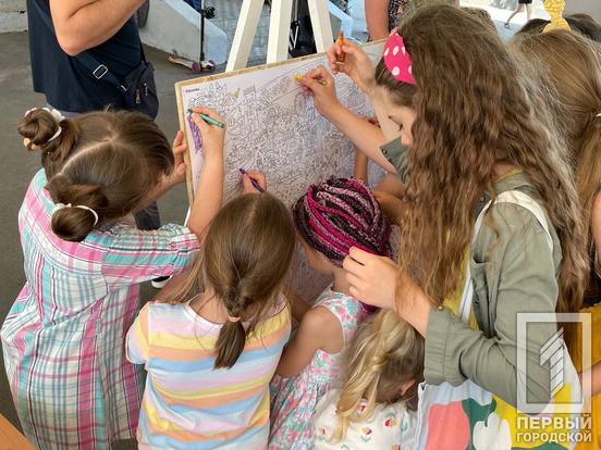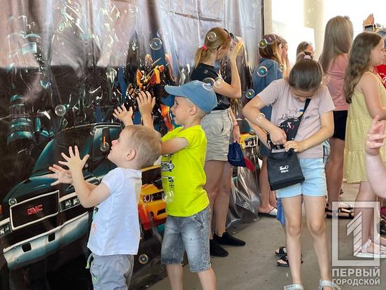 До заходу приєдналися мешканці Інгульця, вимушені переселенці та відвідувачі літніх дозвіллєвих майданчиків шести шкіл району. Зібралося більше 150 дітей. Для них працівники підготували чимало активностей: флешмоби під популярні українські пісні з аніматорами, фотозони з мультяшними героями та псом Патроном, велику розмальовку карти України, а також шоу мильних бульбашок.