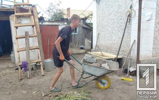 Молодь на передовій відновлення: підлітки-волонтери із Кривого Рогу допомагають старенькому подружжю розбирати завали після ракетної атаки