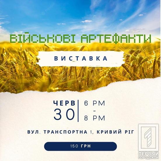 30 червня у картинній галереї Art Craft Oil, що в Довгинцівському районі, відкривається виставка «Військові артефакти», які стараннями майже двох десятків небайдужих митців перетворились на арт-об’єкти. Триватиме виставка в Кривому Розі місяць, після чого вирушить збирати донати для нашої армії за кордоном.