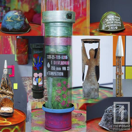 До такого перетворення долучилося 19 небайдужих митців. Експонатів на виставці чимало: від розписаних відстріляних тубусів, до залишків касетних снарядів від «Урагану», яким свого часу били і по Кривому Рогу.
