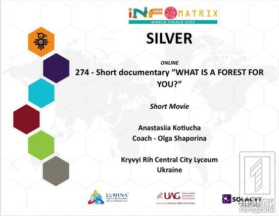Анастасія Котюча підготувала короткометражний фільм присвячений захисту українських лісів «What is a forest for you?». Цей проект спочатку пройшов національний відбір до фіналу міжнародного конкурсу INFOMATRIX 2023, що проходив у мексиканському місті Гвадалахара. А за результатами суперфіналу Анастасія отримала срібну медаль.
