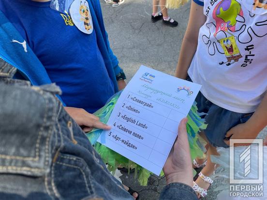 Участь взяли 5 команд по 10 учасників. Вони отримали дорожню мапу і збирали спеціальні фішки, які отримували за проходження локації. Всього їх було 5: «Співоче поле», «Арт-майдан», «Словограй», «Олімп», «English Land». Школярі відповідали на запитання про Україну, складали слова з кубиків, згадували англійські слова, співали,танцювали та отримували патріотичний аквагрим.