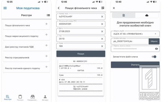 Застосунок передбачає три розділи. В пункті «Мої» можна побачити адресу реєстрації, обʼєкти оподаткування, свідчення про обовʼязок сплатити суму грошового зобовʼязання, розрахунки з бюджетом. Меню з «Послугами» пропонує:
