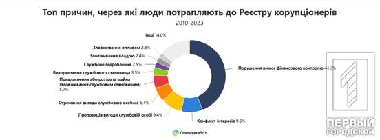Наприкінці вересня в Україні знову став відкритим реєстр корупціонерів. На той момент у ньому було 44,7 тисяч відповідних справ. Найчастіше осіб до переліку включають через порушення норм фінансового контролю, на кшталт проблем з деклараціями, конфлікт інтересів та хабарництво. Порушників закону досить часто штрафували. Проте, є вироки з реальним строком у в’язниці та з конфіскацією майна. Таку інформацію наводять представники проекту «Опендатабот».
