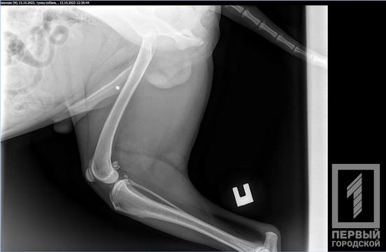 Рентген показав застряглу кулю в лапі. Далі песик отримає необхідну допомогу.