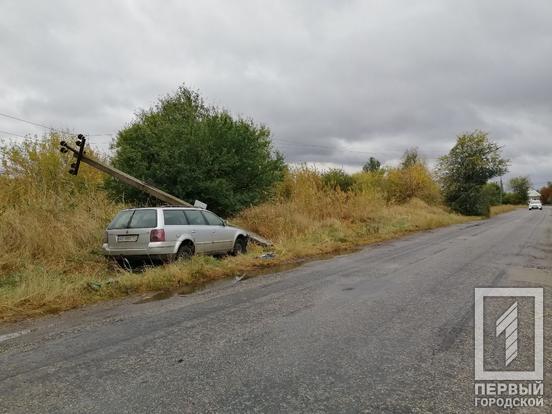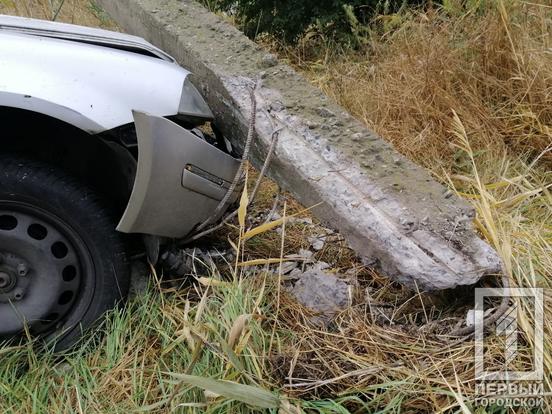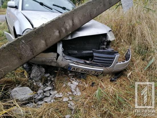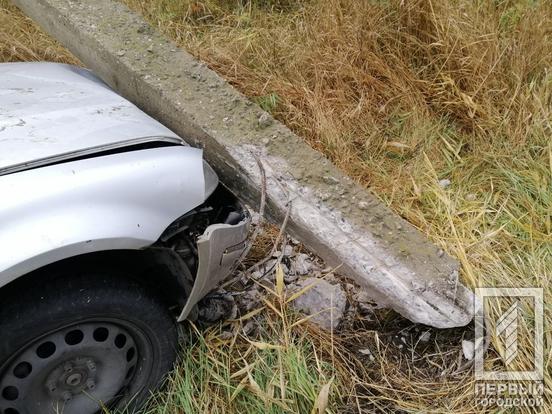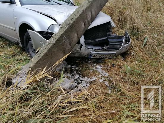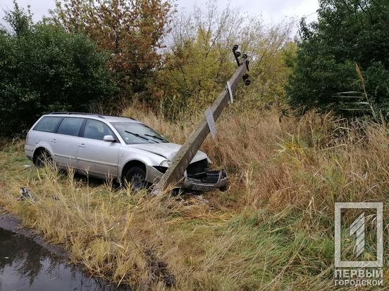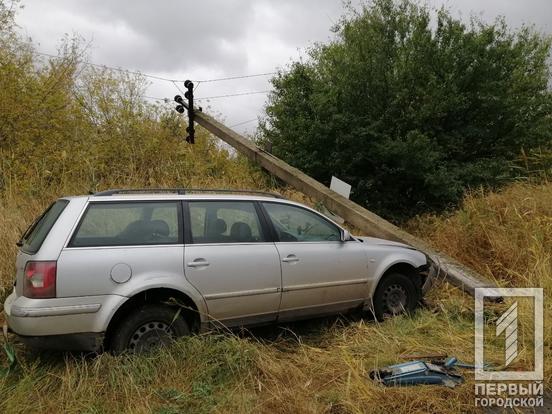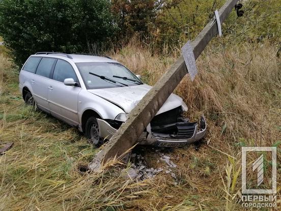 У Кривому Розі водій Volkswagen Passat заїхав у стовп: керманич вцілів, електроопора – ні