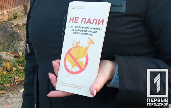 Управління екології виконкому Криворізької міської ради ініціювало рейди-обстеження міста для того, аби попередити людей про відповідальність за відправку опалого листя і залишків сухої рослинності у вогонь. Перша перевірка за підтримки представників ДСНС пройшла у Саксаганському районі Кривого Рогу.