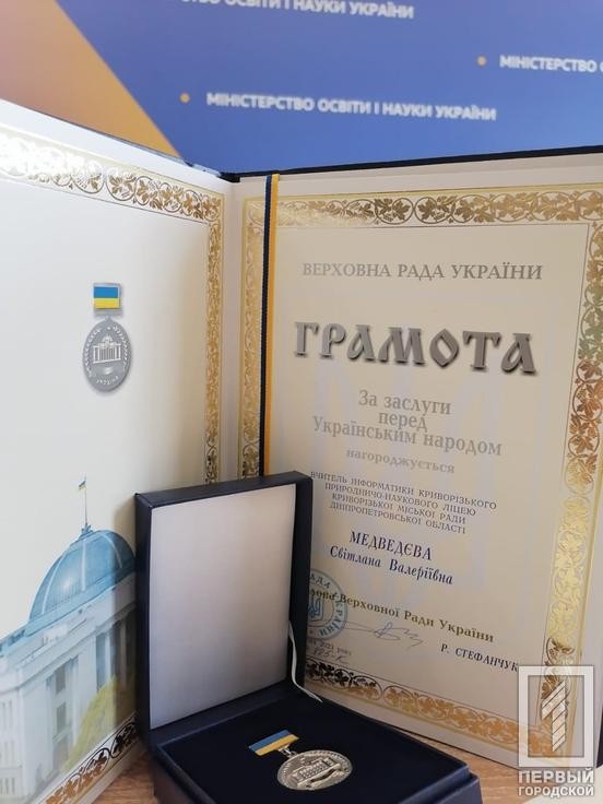 Іменна грамота та медаль від Верховної Ради України: педагог інформатики Світлана Медведєва з Кривого Рогу здобула звання «Учителя року»