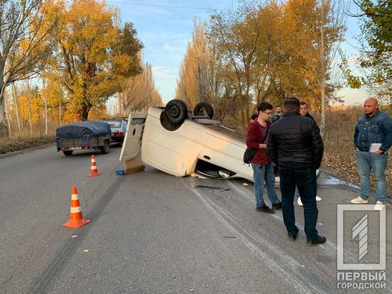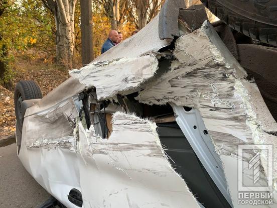 У Кривому Розі на КЦРЗ зіштовхнулися КІА та Daewoo: від удару білий легковик перекинувся на дах