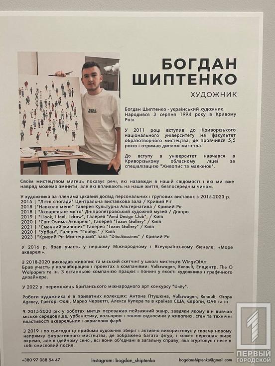 Стан і слова на картинах, які до болі знайомі кожному з нас. У «Бібліотеці на Поштовій» відкрилася виставка «Віддзеркалення» Богдана Шиптенка. Хлопець є випускником Криворізького національного університету. Він вчився на факультеті образотворчого мистецтва.