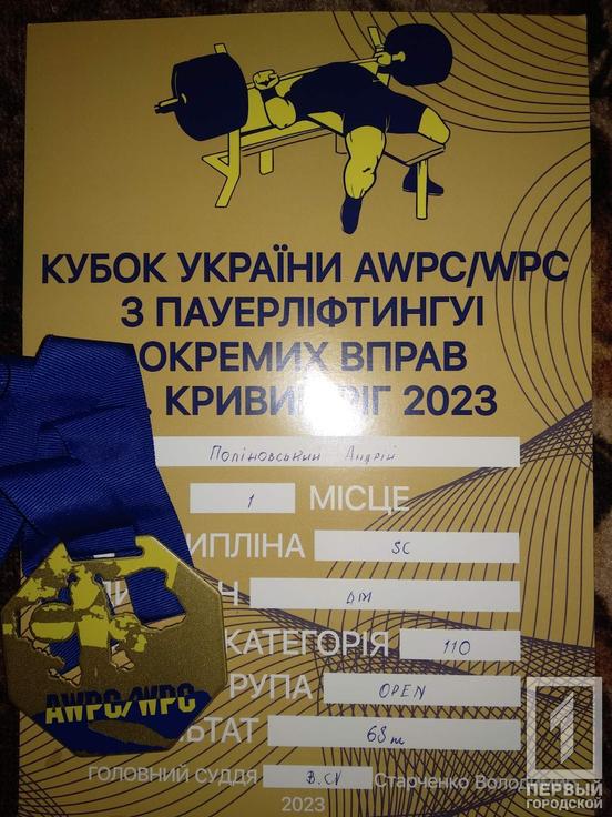 Учасників розділили за ваговими категоріями. Серед спортсменів вагою 110кг перемогу виборов криворіжець Андрій Поліновський. У дисципліні «Строгий біцепс» він підняв 68кг. Чоловік тренувався на базі ЦПО «Терни» та з честю представив заклад.