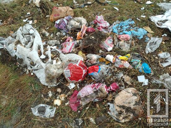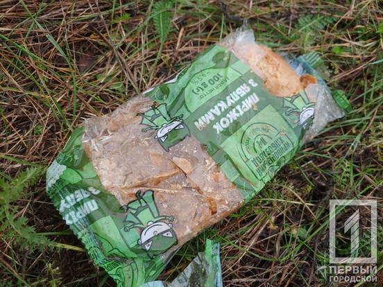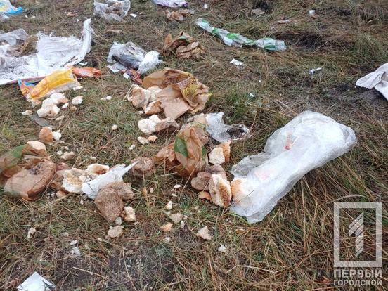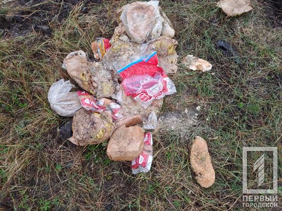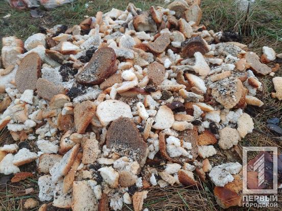 За маркуванням виявилося, що це продукція Інгулецького хлібокомбінату. Зіпсована, з вичерпаним терміном придатності. До приїзду «Першого Міського» хтось на місці працював ковшем. Адже на землі було видно відповідні сліди. Схоже, що невідомі намагалися засипати купу землею чи зрівняти з ґрунтом.
