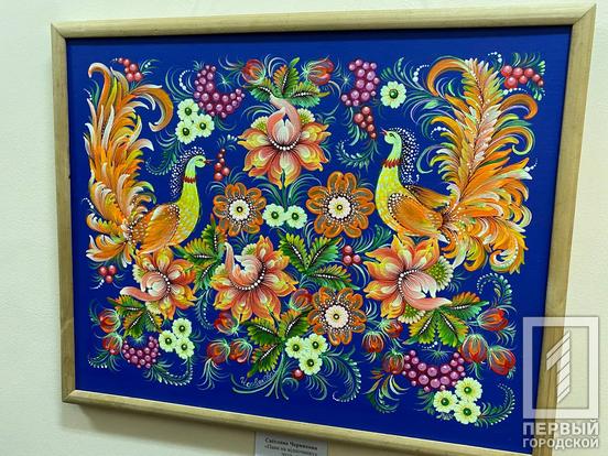 «На виставці представлені 4 ікони. Вони написані олією або пігментами, тобто натуральними мінералами. Три ікони Богородиці, одна в стилі українське бароко: з різьбленням, золоченням, написана олією. Інші написані пігментами. Мені сподобалася творчість майстрині петриківського розпису. Я побачила її роботи у виставковому залі, вони мене вразили рівнем майстерності, підбором кольорів, ідеєю», – розповіла майстриня.