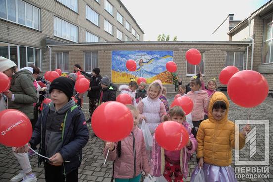 На відкриття муралу запросили вихованців школи, які лишилися в країні з батьками. Більша ж частина зі 180 перлинівців нині знаходяться в евакуації у Туреччині. Почесним гостем на святі був працівник ІнГЗК, ветеран війни в Україні Іван Фірсов. Молодіжка Інгулецького ГЗК традиційно підготувала розваги і подарунки. Малі і старші друзі грали у дартс, складали на швидкість слова із кубиків-літер, змагалися у точності рухів, перекладаючи дженгу, і фотографувалися на фоні намальованої юної українки, що йде через поле золотої пшениці і соняхів до своєї кращої долі.