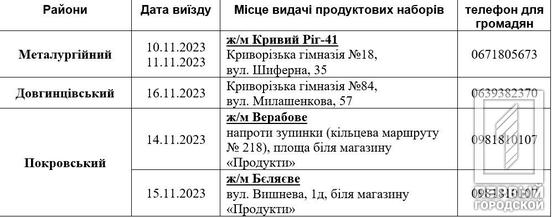 З питань роботи пунктів видачі продуктових наборів, доставки за місцем перебування мешканці можуть звернутися безпосередньо до пунктів видачі продуктових наборів за наданими вище контактними телефонами районних управлінь праці та соціального захисту населення або Контакт-центру м. Кривого Рогу за номером 1520 (для операторів Київстар) та 499-1520 (для інших операторів) або на сайт.