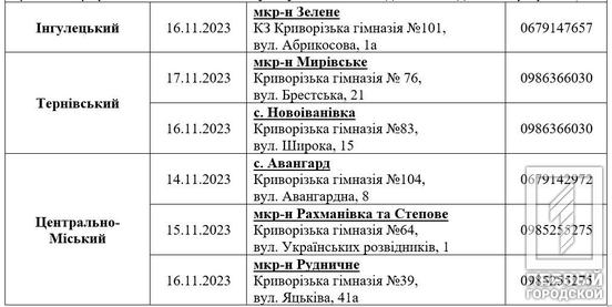 Для мешканців віддалених мікрорайонів міста з 10 листопада по 17 листопада 2023 року (включно) організовано виїзне обслуговування з 09-00 до 15-00 години за графіком: