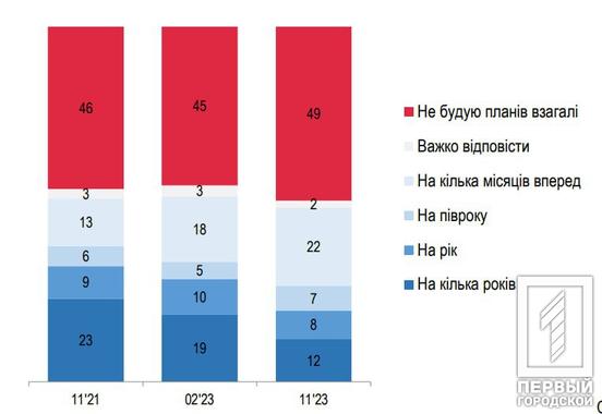 Водночас кількість людей, які готові планувати своє життя на кілька років, скоротилася за цей же період із 23 до 12%.