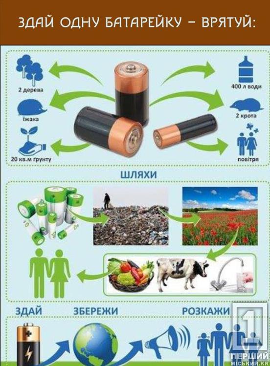 До України, й до Кривого Року зокрема, батарейки потрапляють у незліченній кількості. Тільки 1% люди відправляють на переробку, все інше – викидається. Так не повинно бути. Відправлений у сміттєвий бак хімічний осередок струму дорівнює подальшій шкоді не лише вам та оточуючим, а й наступним поколінням. Спалювати заборонено. Бо процес горіння вивільняє шкідники в атмосферу.