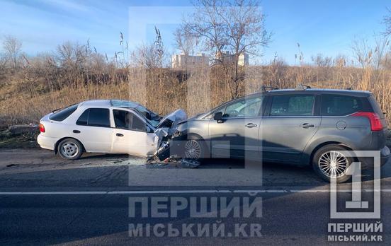 Лобове зіткнення: у Кривому Розі Kia вилетіла на зустрічну смугу та протаранила Peugeot, постраждали троє осіб