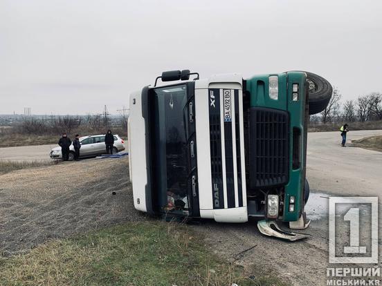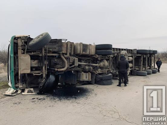 Луснув скат: у Кривому Розі на об’їзній дорозі перекинулася фура